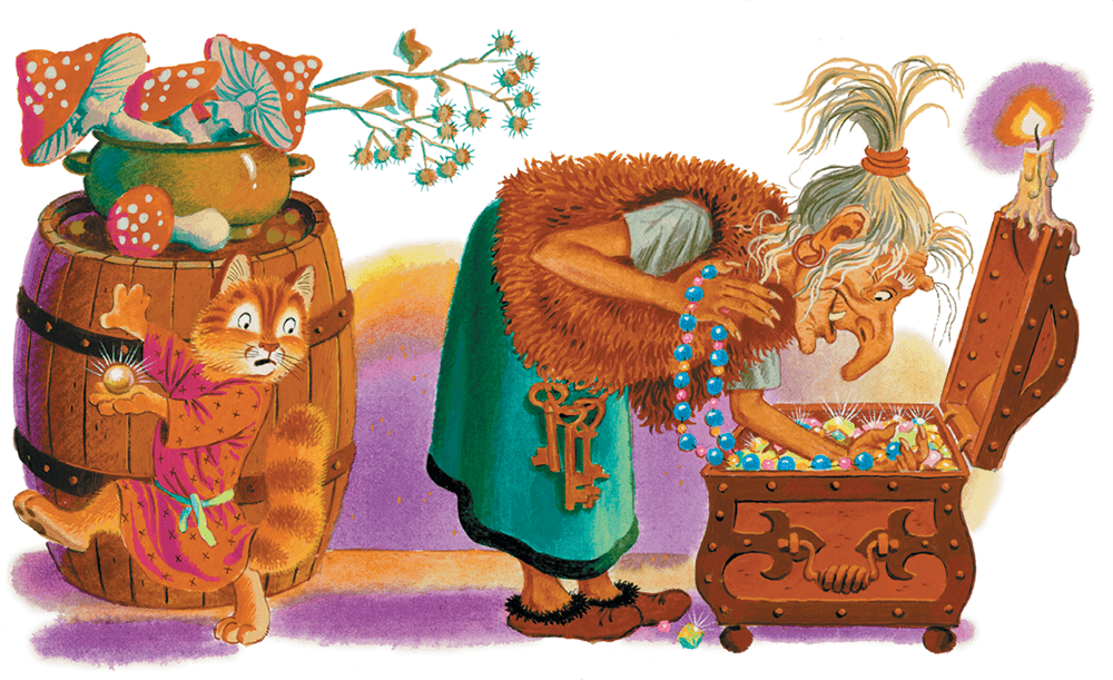 Только случилось однажды: разбирала старуха свой сундук и обронила вдруг крупную жемчужину. Жемчужина покатилась, а кот Воркот – цап-царап, взял да и спрятал её промеж своих лап. Старуха-то и не услыхала, что жемчужина упала.