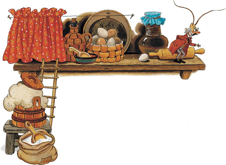 И стал Таракан у пекаря работать: пыль подметает, муку подсыпает и вокруг квашни бегает.