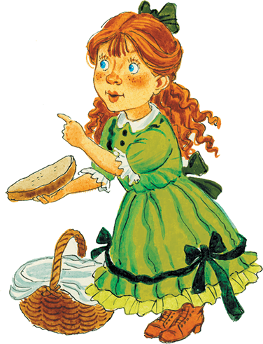 Поблагодарила девочка родную свою тётушку, взяла, как та учила, ленточки, маслица черепок, хлебца ломтик, ветчинки, собралась и пошла.