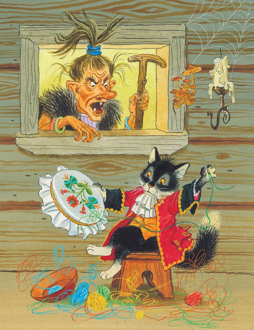 Отошла Баба-Яга от окошка… Смотрит девочка, а по горнице кот ходит. Сам чёрный, глаза жёлтые, хвост трубой. Ходит, жмурится, усищами шевелит, когтищами по половицам поскрёбывает.