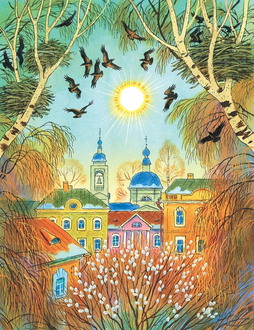 Побежала девочка дальше, вдруг, откуда ни возьмись, стоит на дороге берёзка, ветками машет – глаза высечь хочет.