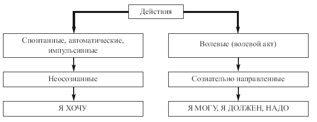 Волевые действия, или волевой акт, являются сознательно направленными, подверженными логическому осмыслению и формулируются как установка