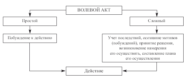 Волевой акт может быть простым или сложным в зависимости от количества компонентов и длительности этапов его осуществления [239, 273].