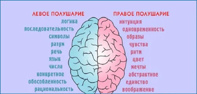 Рис. 4. Специфика в деятельности левого и правого полушарий головного мозга