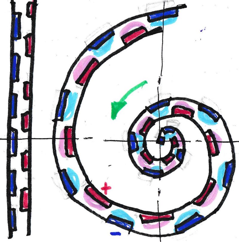 Рис. 20. Двигатель на постоянных магнитах по спирали