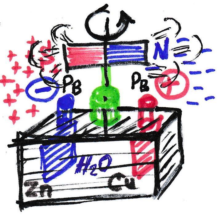 Любой заряд, левого или правого вращения («+» или «-») в электромагнитных полях пространства можно рассматривать как диполь, который, например, при взаимодействии с другими зарядами извне может переходить в относительно стабильный нейтральный диполь. То есть, энергия заряда, как интенсивность его вращения, поддерживается благодаря наличию диполя. Или, два вихря одноимённых зарядов объединяются в единый вихревой диполь с образованием вдоль полюсов силовых линий магнитного поля. При этом достигается зеркальность (симметрия), обоих полушарий по разные стороны от границы Блоха за счёт смещения на 1/4 Т периода колебаний двух контуров. Происходит своего рода синхронизация вибраций, где постоянно возникающая асимметрия, под воздействием энергии извне, помогает стабилизировать синхронизированное состояние, как стремление природы вернуться к балансу.