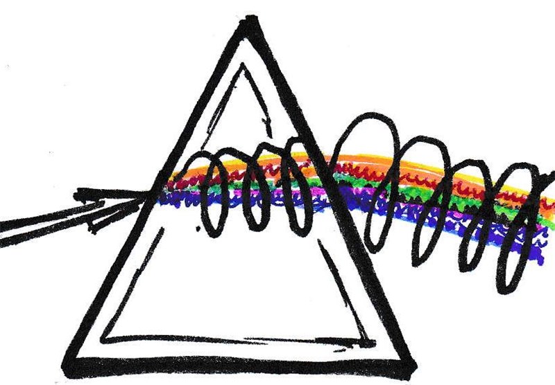 Например, электромагнитная волна света, проходя через кристалл (попадая в него), оставляет в нём след, вызывая электромагнитные колебания. Возникает звуковая волна как информация о появлении волны от источника энергии. Соседние атомы подстраивают своё положение относительно линий магнитного поля волны и это искривляет траекторию пути света. В результате атомы кристалла начинают сами излучать, потому что их волны интерферируют между собой, порождают вихри полей, втягивая и закручивая волну падающего на кристалл света внутрь его, как энергию питания собственных атомов вещества. Тут же в толщи кристалла возникает электрическое поле и внутреннее звучание его структуры меняется, формируется новое информационное поле. Равно как буквы (символы звуков) выстраивают смысл текста, так и атомы конструируют структуру вещества (кристалла), формируя канал передачи волны, или же, каждый атом вещества имеет индивидуальный звук как частоту собственных колебаний. Не потреблённая (излишняя) часть световой энергии волны проходит сквозь вещество, полностью смодулированная звуковой волной, образованной от взаимодействий в толще вещества. Когда волна выйдет из кристалла, то она будет нести в себе всю информацию о внутреннем его строении (см. Рис. 49).
