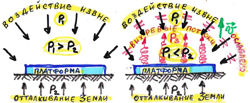 Рис. 5. Отталкивание платформы от земли ослаблением воздействия извне