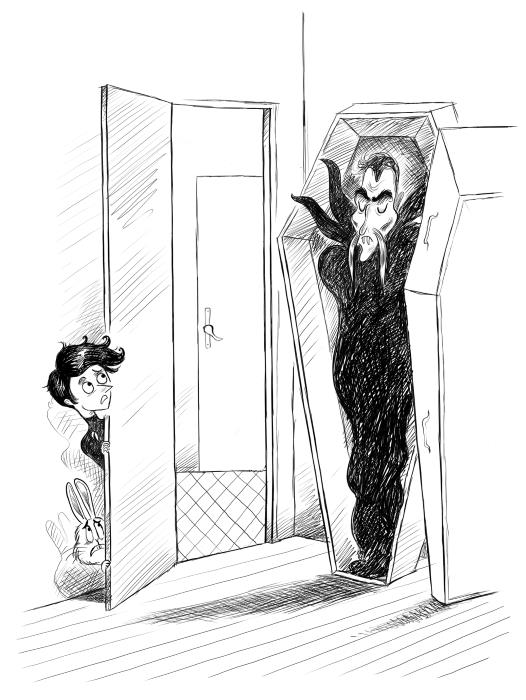 – Человек с большими усами в гробу очень похож на Дракулу, как его описал Брэм Стокер в своём романе. И вообще всё идет точно по книге. Всё вполне логично. Ну в каком-то смысле, – добавил он, поскольку кролик глядел на него с сомнением. – Мы попали сюда после того, как открыли «Большую книгу ужасов», а «Дракула» там точно есть. К тому же это самая знаменитая в мире история про вампиров.