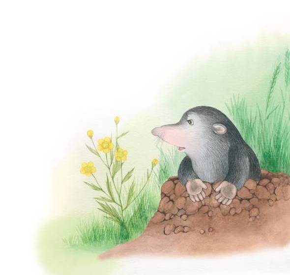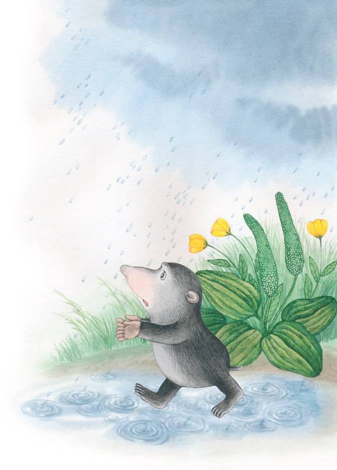 Тут из-под земли вылез Крот и стал искать, куда бы спрятаться. Вода залила все его подземные ходы.
