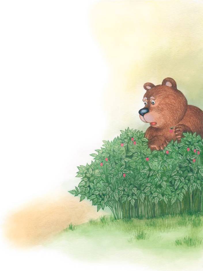 Увидел на своем пути Заяц малиновый куст и стал лакомиться душистой ягодой, как вдруг из-за другой стороны куста поднялся Медведь: