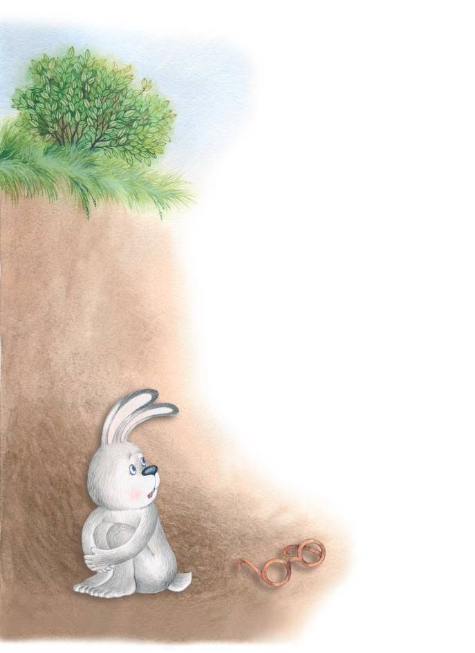 Хоть и не очень хорошо было видно сквозь очки, но Заяц их не снимал и все выше задирал нос. Так он и не заметил огромную яму под ногами и провалился в неё. Падая, он подвернул лапку, и потерял очки.