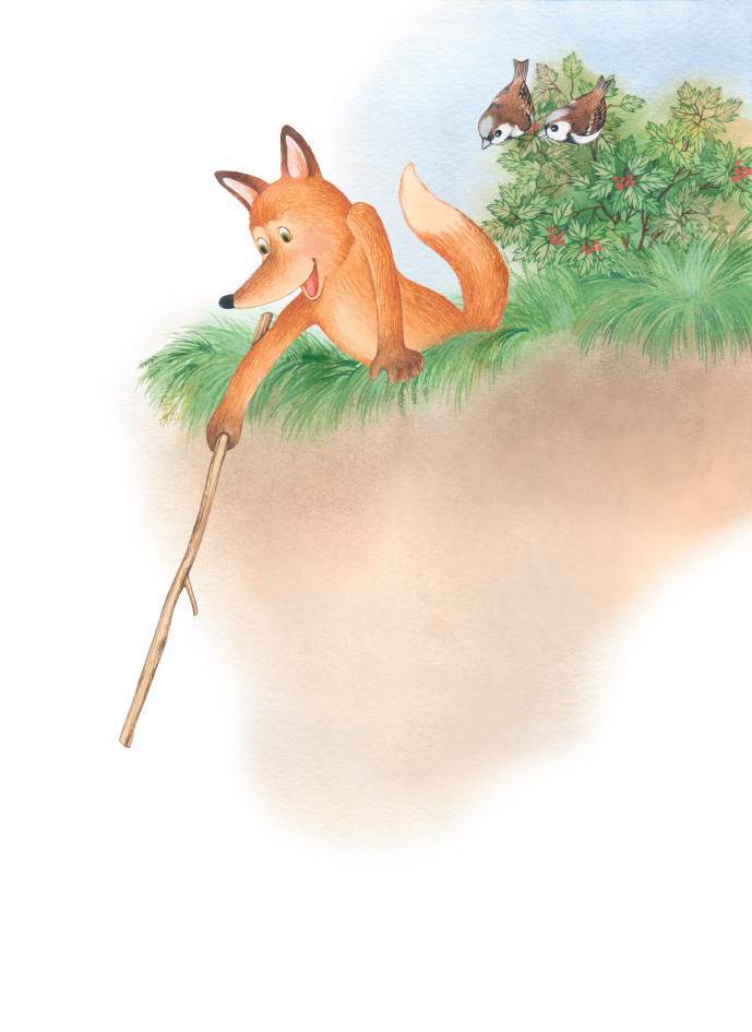 Лиса куда-то убежала, а Заяц увидел Воробьёв, сидевших на дереве:
