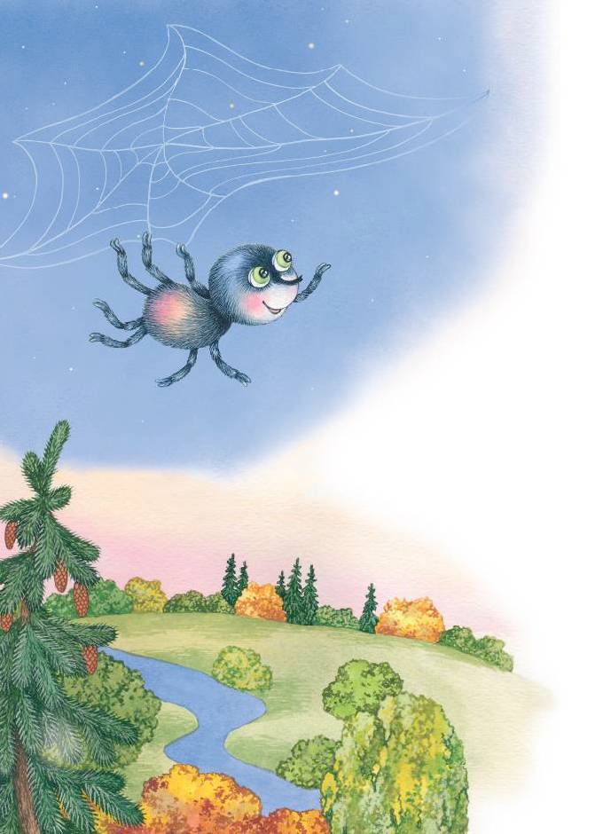 Воробей осторожно подхватил Сороконожку и взмыл вверх. Сороконожка закрыла глаза и когда открыла их, то увидела, что они очень высоко над ручьём: