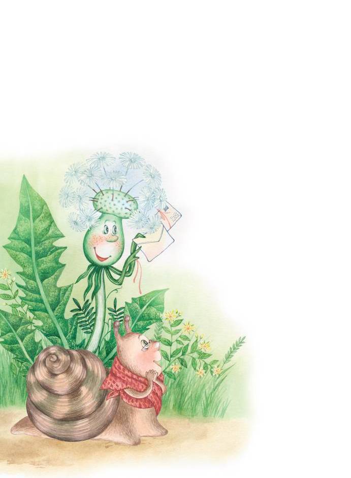 Улитка изо всех сил стала дуть, и десятки воздушных семян одуванчиков с конвертами и телеграммами весело взвились в воздух: