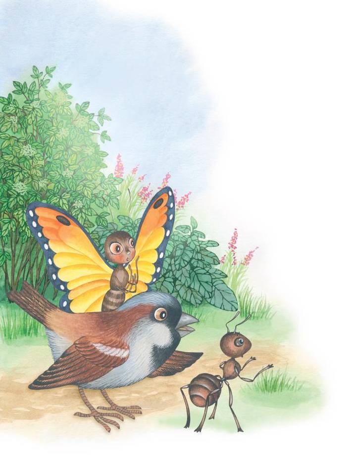 – А ты, Бабочка, лети и предупреди Ежа, что Воробей к нему больную Сороконожку несёт. А я побегу через мостик, чтобы помочь Ежу в случае надобности.