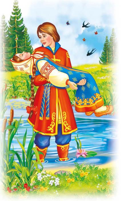 Пошла Алёнушка на работу и братца с собой взяла. Идут они по дальнему пути, по широкому полю, и захотелось Иванушке пить.