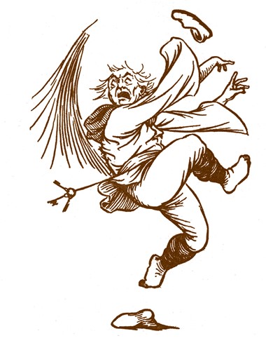 Он от палки через лавки, столы скачет, кричит-голосит: