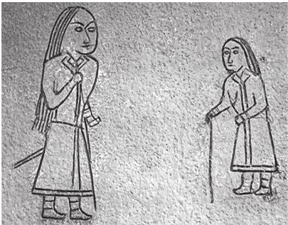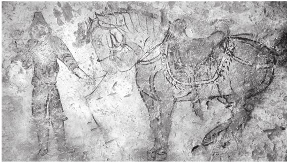 Неизвестный автор. Живопись на стенах могилы тюрка. VII в. Гробница Шорона Бумбагара. Монголия