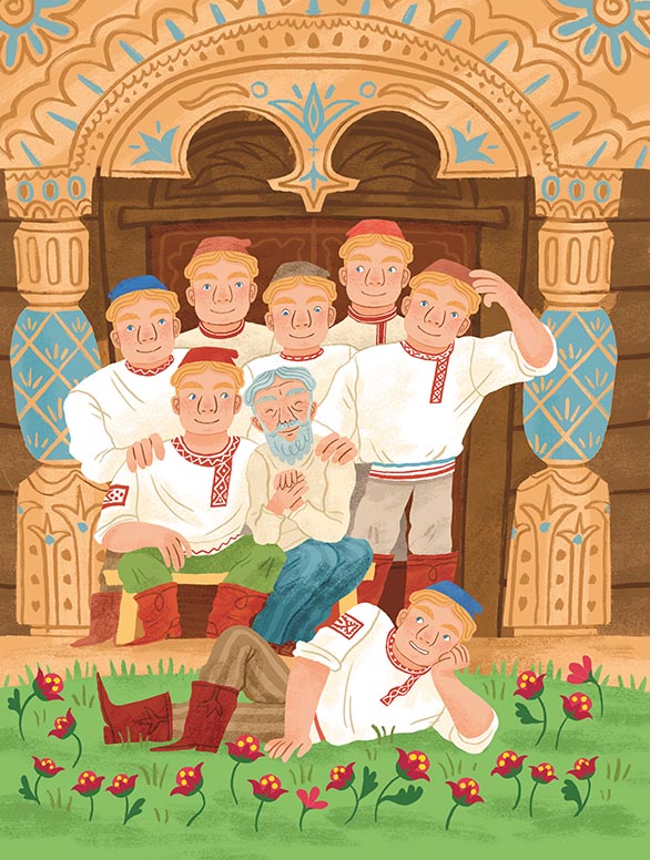 В одном месте у мужика было семь сынов, семь Семёнов – все молодец молодца лучше, но такие лентяи, неработицы – во всём свете поискать! Ничего не делали. Отец мучился-мучился с ними и повёз к царю; привозит туда, сдаёт всех в царскую службу. Царь поблагодарил его за таких молодцов и спросил, что они умеют делать. «У самих спросите, ваше царско величество!» Царь наперво созвал большого Семёна, спросил: «Чего ты умеешь делать?» – «Могу украсть, что приглядится или полюбится, ваше царско величество». – «Ладно; мне такой человек на время надобен». Созвал второго: «А ты чего?» – «Я умею ковать всяки дорог и вещи». – «Мне и такой человек надобен». Созвал третьего Семёна, спрашиват: «А ты чего умеешь делать?» – «Я умею стрелять на лету птицу, ваше царско величество». – «Ладно!» Спрашиват четвёртого: «А ты чего?» – «Если стрелец подстрелит птицу, я вместо собаки сплаваю за ней и притащу». – «Ладно! – говорит царь. – А ты чему мастер?» – спросил пятого. «Я буду смотреть с высокого места во все царства и стану сказывать, где чего делатся». – «Хорошо, хорошо!» Спросил шестого. «Я знаю делать корабли; только тяп-ляп, у меня и будет корабь». – «Хорошо, а ты чего знашь?» – спросил седьмого. «Я умею лечить людей». – «Ладно!»