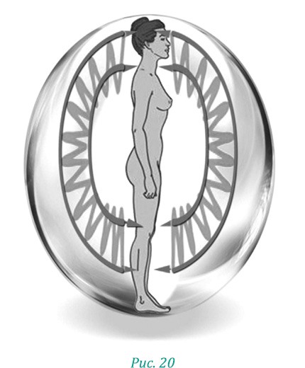 Мысленно опустите сферу до ног – увеличьте контуры маленькой сферы до объема яйца, в котором вы находитесь (рис. 20).