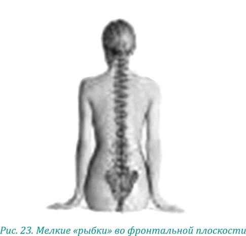 Чтобы правильно сделать прием «Рыбки», надо лечь ровно. Однако практически у всех есть латеральные наклоны тела (сколиотические) и его отклонения от гравитационной оси, которые сохраняются и тогда, когда вы лежите. При таком искажении волна сбивается.