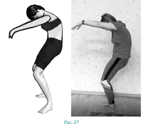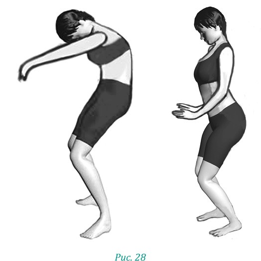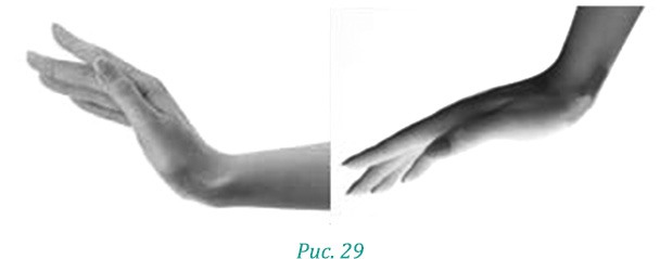Обращайте внимание на положение рук! При переходе во вторую фазу, когда руки приближаются к «боковым швам», кисти начинают разворачиваться горизонтально земле, как будто вы помогаете себе изогнуться в талии (рис. 29).
