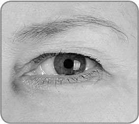 В случае сильного спазма круговой мышцы глаза его размер с возрастом заметно сужается (рис. 4.5). Мы провоцируем это сужение своими механическими действиями, в том числе привычкой часто прищуриваться от света, близорукостью или профессиональной статической мимикой (как у ювелиров, часовщиков, микробиологов и т. д.).