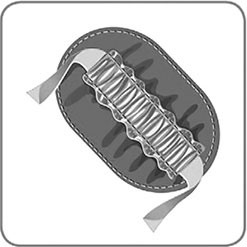 Эту напряженную стяжку круговой мышцы глаза можно представить в виде кулиски, которая применяется в шитье для стягивания ткани с помощью шнурка или резинки (рис. 4.13). Точно такая же кулиска стягивает в сборку и мышечные волокна глаза. Тактильно гипертонус кулиски ощущается как тугая веревка. В большинстве случаев волокна круговой мышцы глаза по отношению к этой стяжке оказываются в меньшем тонусе – круговая мышца глаза как бы провисает на этой связке и проваливается внутрь глазницы. Разница в балансе натяжения кулиски (окантовки) и волокон круговой мышцы определит внешний вид глаз.