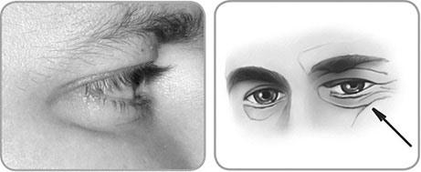 Во время сна под давящим весом головы этот валик зажимается между подушкой и лицом. В результате между валиком и тонкой кожей нижних век закладываются морщины, либо углубляющие границу «веко-щека», либо идущие от внешнего угла глаза вниз по щеке.