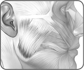 Жевательная мышца не относится к группе мимических, поскольку она обоими концами крепится к костям – к верхней и нижней челюстям. Зачастую с возрастом нижняя челюсть начинает подтягиваться к верхней. Основными виновниками этого процесса являются стрессы, когда мы идем по жизни «сжав зубы», напрягая челюсть не только днем, но и ночью.