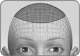 Венозный застой часто проявляется в виде отека скальпа в теменной и лобной зонах. Его тактильно можно обнаружить, пальпировав голову. В этом случае на костной части черепа будут лежать лишние отечные ткани. Зачастую их границы четко очерчены, что можно представить в виде шапочки-ермолки (рис. 4.22).