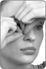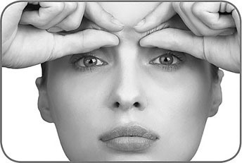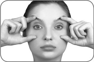 1. Поставьте средний палец правой руки над серединой правой брови. Палец другой руки – над внутренним углом глаза. Сведите оба пальца друг к другу (рис. 8.33).