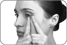 1. Положите большой палец под зону нижних век изнутри, а указательный палец второй руки поставьте напротив него на нижние веки.
