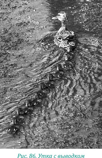 По сути, клюв и копчик птицы (пигостиль) – это две точки магнита утки (рис. 85), позволяющего птицам в стае выстраиваться за вожаком хвост в хвост при перелетах или при следовании птенцов за матерью (рис. 86).