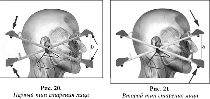 В первом случае лицо удлиняется – расстояние b (рис. 20). Во втором случае «схлопывается» – расстояние а (рис. 21).