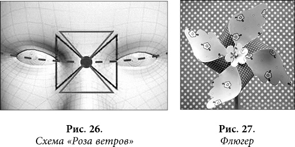 Тот же принцип отражения работает и по диагонали, поскольку эту конструкцию можно представить в виде флюгера. А «роза ветров» станет ее центром, на котором крутится флюгер.