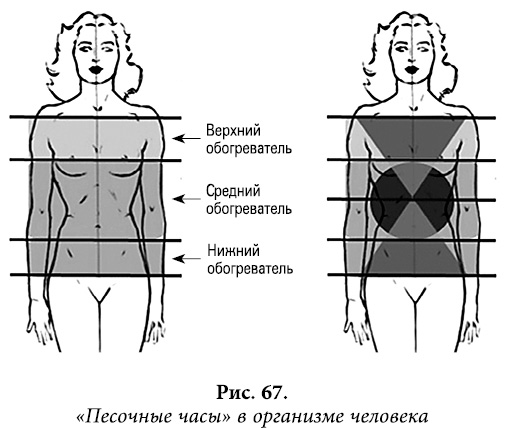 В обычных песочных часах время перетекания песка из верхней «амфоры» в нижнюю регулируется диаметром их узкой талии. Если совсем перекрыть ток песочка, часы перестанут работать. То же самое происходит и в организме. «Часы» внутри нас своей узкой перемычкой приходятся на талию. Поэтому в идеале у женщин она и узкая (ведь, как вы скоро узнаете, половая Х-хромосома и есть женская матрица). Спазм этого отверстия, скручивающий грудобрюшную диафрагму мышечным или сосудистым блоком, хронически сузит диаметр «отверстия», делая это место «зоной риска».