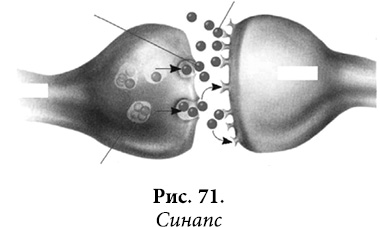 Точно так же под воздействием нервного импульса изливаются в синаптическую щель пузырьки с медиатором (который синтезирует нейрон и его аксон).