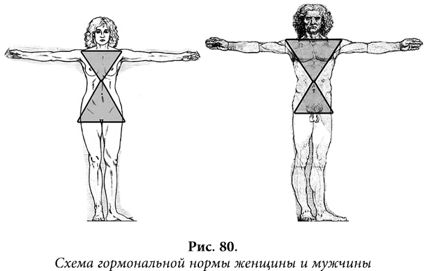 Формы мужской и женской фигуры можно представить в виде треугольников. Я не имею в виду формы обозначения знакомых всем общественных мест, хотя, как вы увидите позже, и они пошли от сакральной геометрии. Собственно, эту геометрию треугольников испольует и медицина.