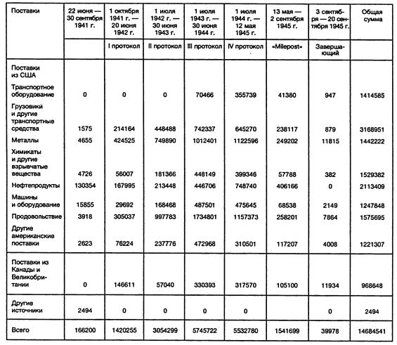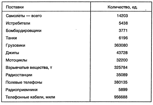 Статистика поставленных в Советский Союз материалов и техники (1941–1945)[375]375