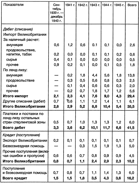 1. В приложенных таблицах собраны основные факты относительно развития в Великобритании (и странах стерлинговой зоны) внешнего финансового положения в период Второй мировой войны (с сентября 1939 г. по декабрь 1945 г.).