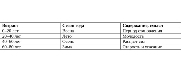 Таблица 2. Классификация возрастов жизни по Пифагору (VI в. до н. э.)