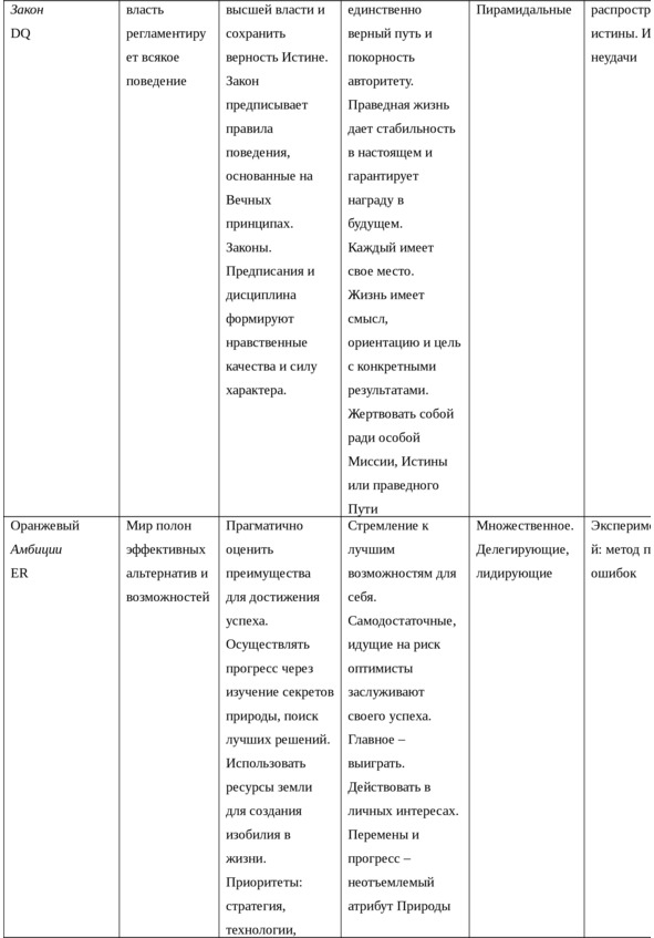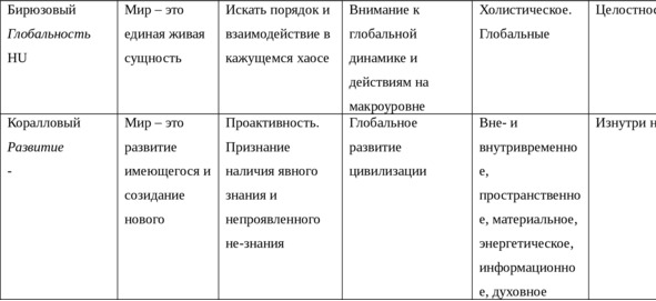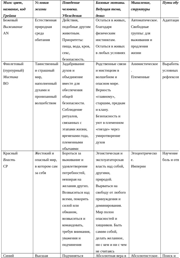 Итак, каждой системе мышления (цМиму) присвоен свой цвет и выделены основные характеристики, которые приведены в таблице 9.