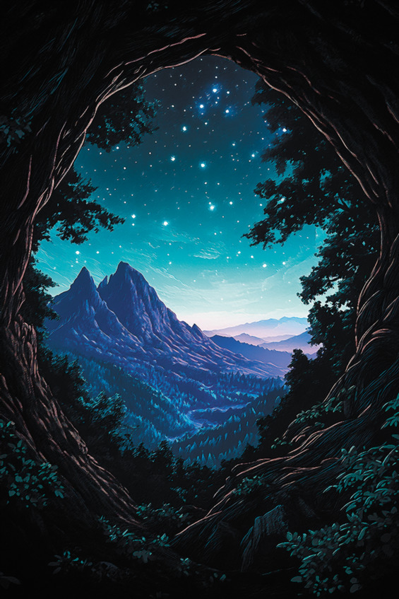 Среди множества деревьев, растущих перед горой, Мурчик обнаружил старый дуб с довольно крупным дуплом чуть выше уровня земли. Там они решили провести ночь. Внутри было темно, но довольно уютно. Друзья соорудили из сорванной травы себе лежанки и устроились на ночлег. Однако сон никак не шел к ним. Из дупла была видна часть неба и вершина загадочной горы.