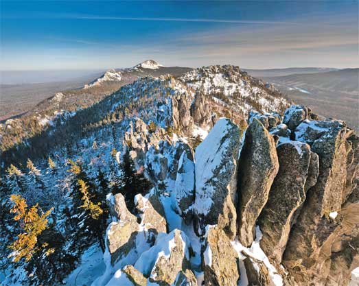 Уральские горы пересекают 10 регионов России и географически делятся на пять зон: Полярный Урал, Приполярный, Северный, Средний и Южный Урал. Полярный Урал закутан в снега и закован льдами. Это край тундр и вечной мерзлоты. Зимой температура здесь опускается до –55°C. Начинается Полярный Урал с круто поднимающегося над тундрой горного массива Константинов Камень в 45 километрах от Ледовитого океана. Самая северная гора Урала не слишком велика, высотой всего 483 метра, но, если подняться на ее покрытую курумником вершину, можно разглядеть вдали узкую полоску моря. Высочайшая гора Полярного Урала – Пайер, высотой 1472 метра, покрыта ледниками и снежниками круглый год. Даже летом на ее плоской, похожей на плато вершине царит арктический холод. Альпинисты совершают восхождение на Пайер в июле и августе. Но находятся отчаянные смельчаки, поднимающиеся зимой, когда велика вероятность схода снежных лавин.