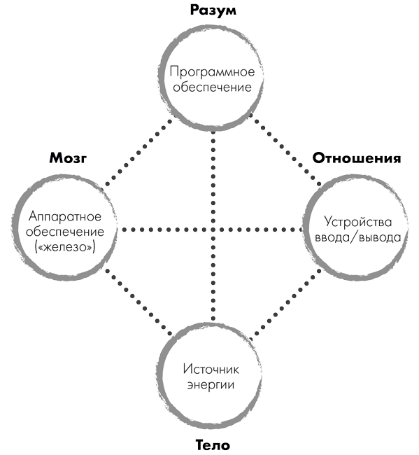 Наконец, четвертый квадрант – разум. Нейропсихиатр Дэниел Сигел описывает разум как эмерджентное свойство, формирующееся в результате взаимосвязи мозга, тела и отношений, в которых мы состоим[2]2