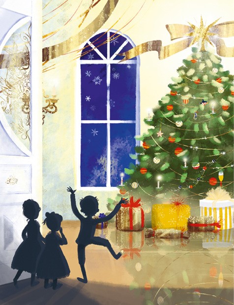 Гости не заставили себя долго ждать, и вскоре дом наполнился весёлым говором, праздничным оживлением и взаимными поздравлениями. Наконец дверь распахнулась и всех пригласили в гостиную. Клара и Фриц буквально замерли от восхищения: хорошо знакомая комната преобразилась, как по волшебству. Она вся была наполнена разноцветными огнями, звёзды и гирлянды мерцали, отражаясь в люстрах и канделябрах. А в центре стояла большая ёлка – густая, пахнущая душистой смолой и очень, очень красивая.