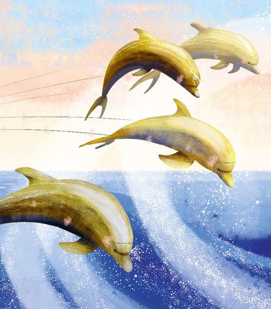 Из глубин волшебного озера вынырнула четвёрка золотых дельфинов. Они подхватили ладью и помчали её вдаль, окропляя голубые волны фейерверком ярких брызг. Вскоре на горизонте показалась земля.