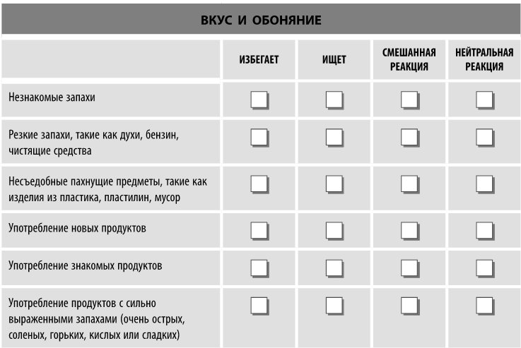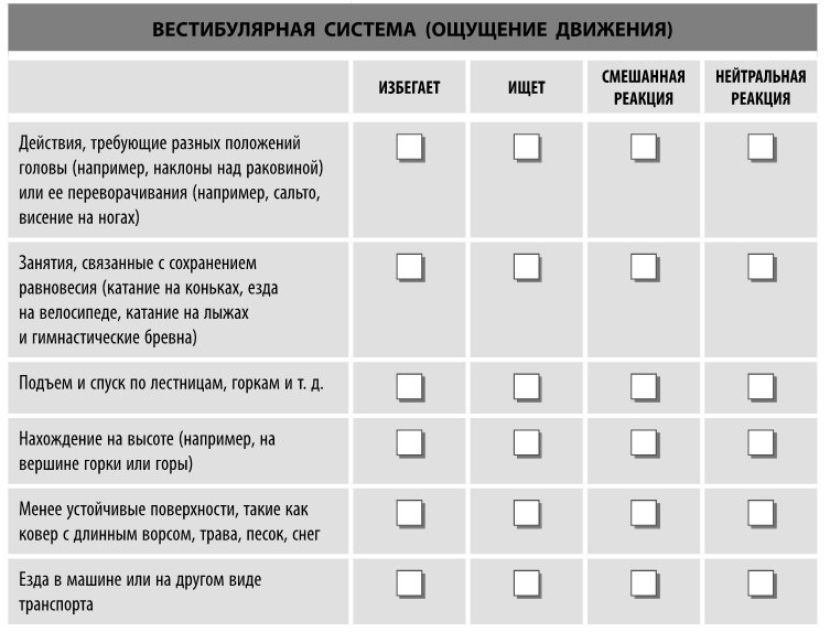 Размышляя над ответами, вы лучше поймете, что стоит за тем сбивающим с толку поведением, с которым вы сталкиваетесь каждый день. Возможно, теперь вы осознаете, что большая часть поведения, которое вы считали странным и необъяснимым, подпадает под определенные шаблоны – поиск или избегание определенных ощущений. Вместо того чтобы пытаться изменить симптоматическое поведение ребенка, теперь вы лучше подготовлены к тому, чтобы решать сенсорные проблемы, которые стоят за ними.